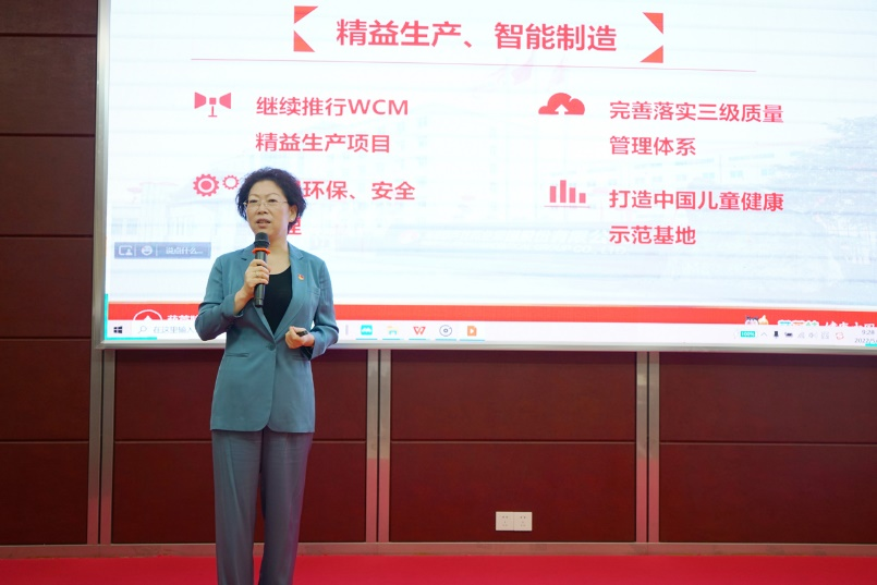 刘景萍董事长引用席大大总书记在2022年博鳌亚洲论坛上的重要讲话勉励全体与会人员,在海南自贸港建设的机遇期,认真学习贯彻落实省第八次党代会精神,坚持党建引领企业发展,将PA旗舰厅药业集团打造成中国儿童健康领军企业。